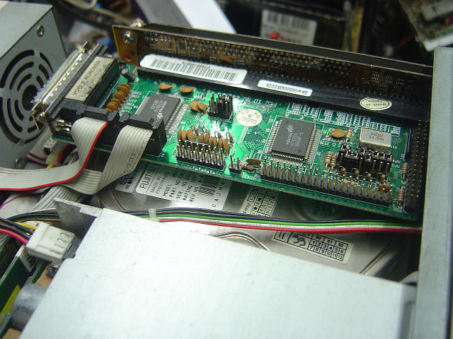 1 placa de video ISA bixada, que forneceu o pedaço de placa pra soldar os fiozinhos e encaixar no slot ISA da placa