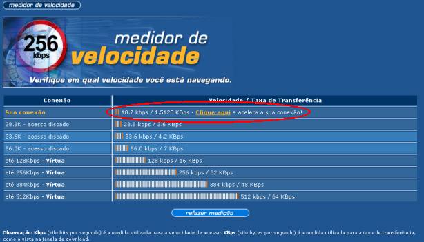 Estou desanimado com essa lerdonet que virou a Rantac, até parece que voltei a 1994, nos 14.400 da vida. O modem até conecta em velocidade razoável, 50.666kbps, mas o gargalo é tanto, mas tanto, na rede-ip, que eu mal consigo passar dos 1.4Kb/s nas transferências (segundo o teste do medidor de velocidade do virtua).