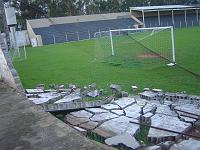 O escadão que interliga a Rua Gil Fadiga com a Rua Irmã Cáritas, totalmente bloqueado por destroços do muro.  Nao é difícil de visualizar o que aconteceu, os pinheiros vergaram com o vento e derrubaram o muro.  Bombeiros podando (ou cortando? Aposto nessa hipótese) a árvore centenária na Rua Getulio Vargas, atras da escola Joaquim José.  Não sei o real motivo da poda... mas uma pena.  Depois de removidos o entulo da pra ver o estrago... essa foto refere-se a ai de tras, da praça Roqui Fiori.  Muro do campo do Palmeiras F.C. No minimo foi derrubado pelo vento...  ... e a enxurrada fez o resto do serviço, visto a quantidade de terra que se soltou debaixo da calçada e caiu sobre os destroços do muro.  Aqui deste angulo da pra ver melhor.                                  Condominio São Lourenço... olha a quantidade de galhos que caiu, deu pra fazer uma ilha em frente a portaria.  O muro também não resistiu ao vento.  Uma boa faixa do muro foi danificada.